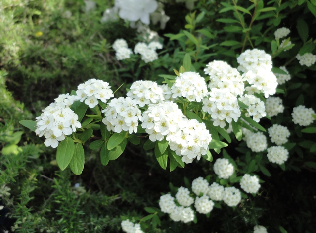 白い小花が房状に咲く姿は、まるで小さな「・・・」のようです。まったく別の種ですが、もうすこし房の多きものは大・・・。これは小・・・です。